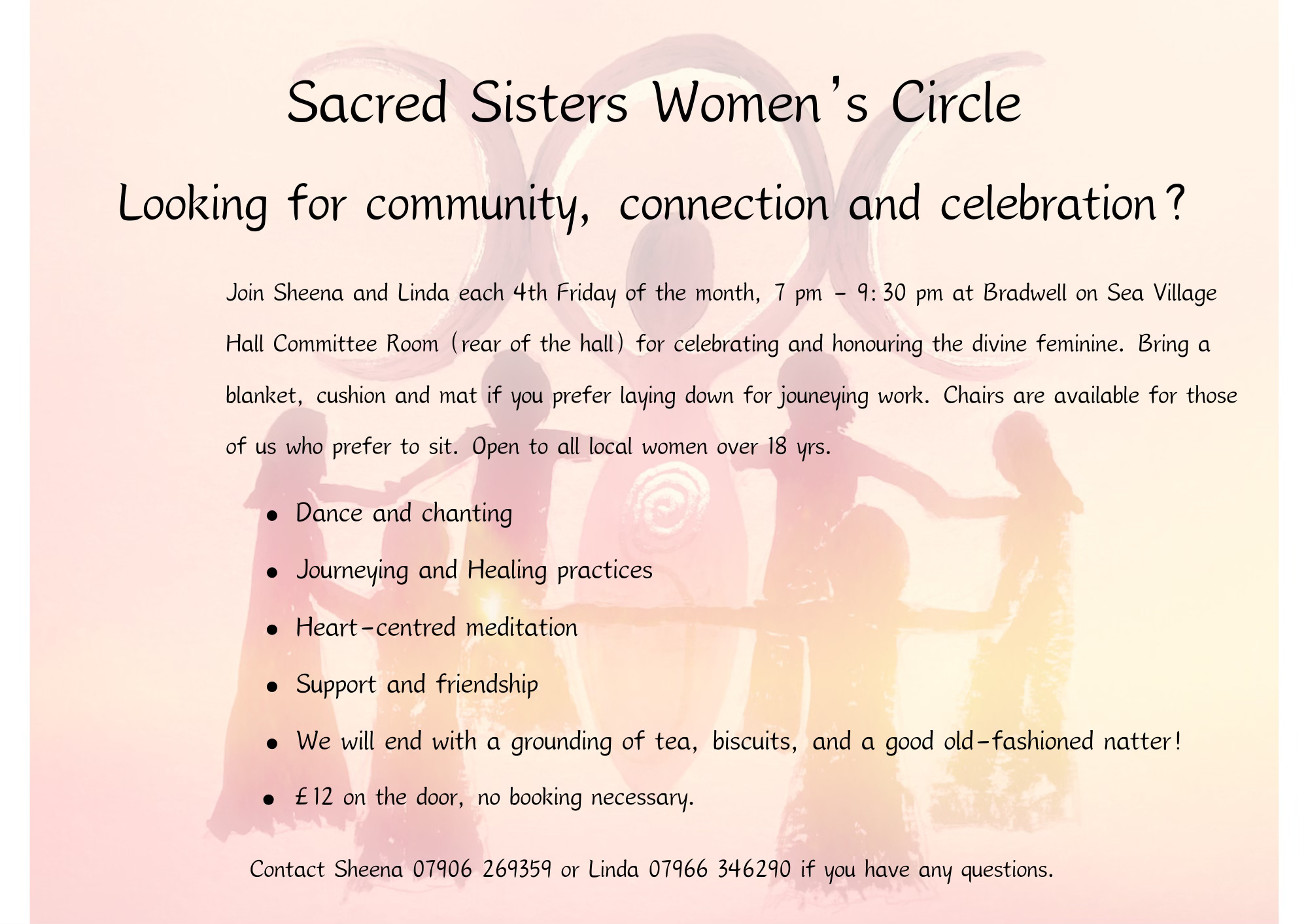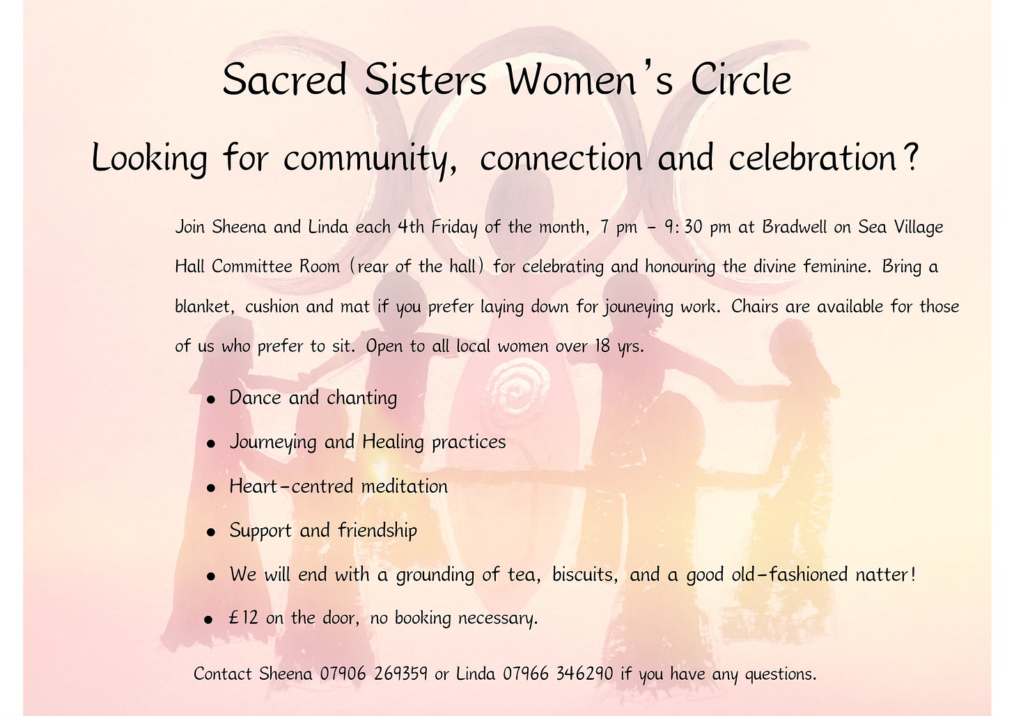 I started co-hosting a women’s circle called Sacred Sisters in April with my dear friend Sheena Cundy. If you live locally to the Dengie area of Essex, we would love to see you there. It runs every 4th Friday of the month from 7 pm until 9:30 pm, focusing on community, connection and celebration. Come and join us for some goddess-inspired soul food with a heart-centred vibe. You can find out more via the event page on FaceBook here